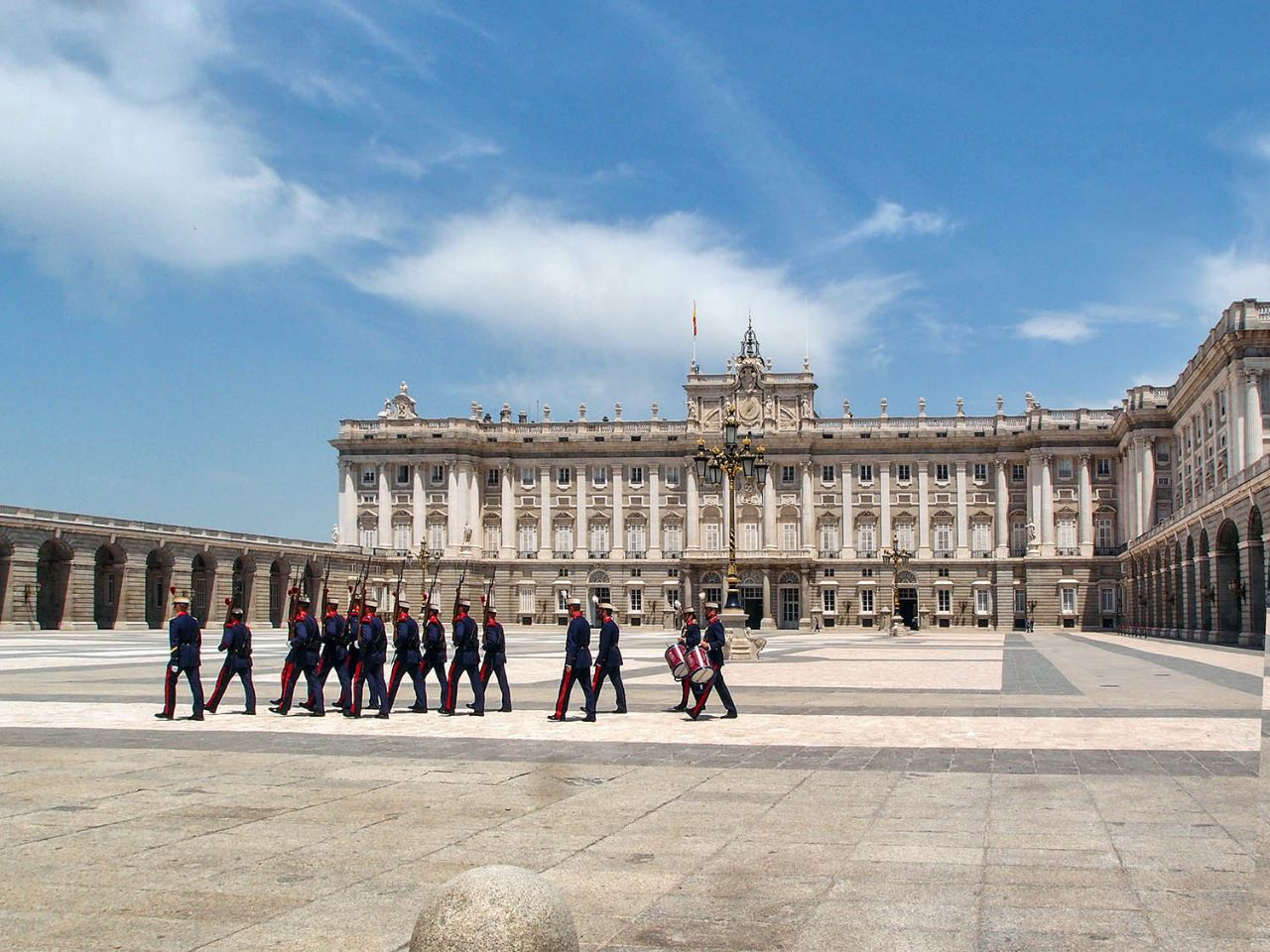 На том шоу закончилось, и мы неспешно дошли до южного фасада дворца, где ещё застали марширующих гвардейцев, которые как раз покидали территорию обширного внутреннего двора.