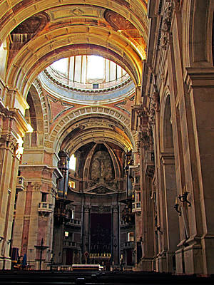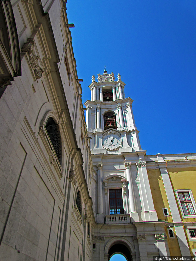 "Монастырский ансамбль в Мафре, построенный в 1707—1750 гг., возник в результате грандиозного проекта короля Жоана V. В честь рождения наследника он решил осуществить свою честолюбивую мечту — затмить испанский Эскориал. В художественном романе Жозе Сарамаго «Воспоминание о монастыре» (порт. Memorial do convento) (1982) утверждается, что в строительстве монастыря участвовали более 50 тысяч человек, насильно согнанных со всей Португалии. Оплачивалось колоссальное строительство золотом и бриллиантами, поступавшими из Бразилии. За главным фасадом длиной 220 м расположены 880 помещений, которые вряд ли были обитаемы. Весь комплекс занимает площадь 40 тысяч кв.м., а мраморная базилика замка по размерам сравнима с собором" — понятно, что не дословно, но основные тезисы плотно в памяти — это же просто открытие!