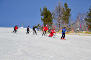 Желающих пройти горнолыжную школу в марте этого года было 15 человек и на первом занятии нас разбили на 2 группы по 7 и 8 человек каждая. Делили преимущественно из-за скорости катания. Одна группа была чуть быстрее, другая чуть медленнее.