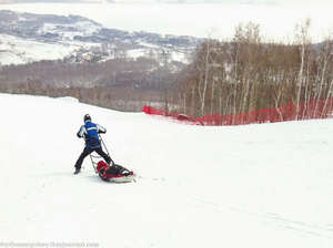 Но судьба распорядилась иначе, встать сам Юра не смог из-за жуткой боли и вниз к подножию склона его повёз спасатель на акье.
