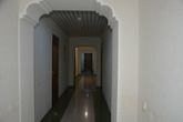 К отелю прилегает небольшой сквер с обширной пустой парковкой и он находится, как бы, за двойным забором.