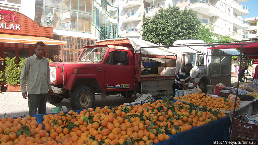 Пахнет Турция вкусно! Вот развалы апельсинов: местных, сладких, дешёвых. Сколько сока выпито за месяц!