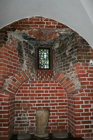 Итак, начнем по-порядку, со Среднего замка. Войдя в главные ворота, поворачиваем направо и оказываемся в помещении Госпиталя. Первая его комната вовсе не приемный покой, а баня. Каждого больного, попадавшего сюда, сначала обязательно мыли, а в последствии их мыли два раза в неделю! Здоровые ходили в баню дважды в месяц, что для средних веков просто очень часто! Сейчас здесь располагается временная экспозиция, посвященная Копернику.