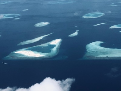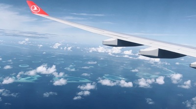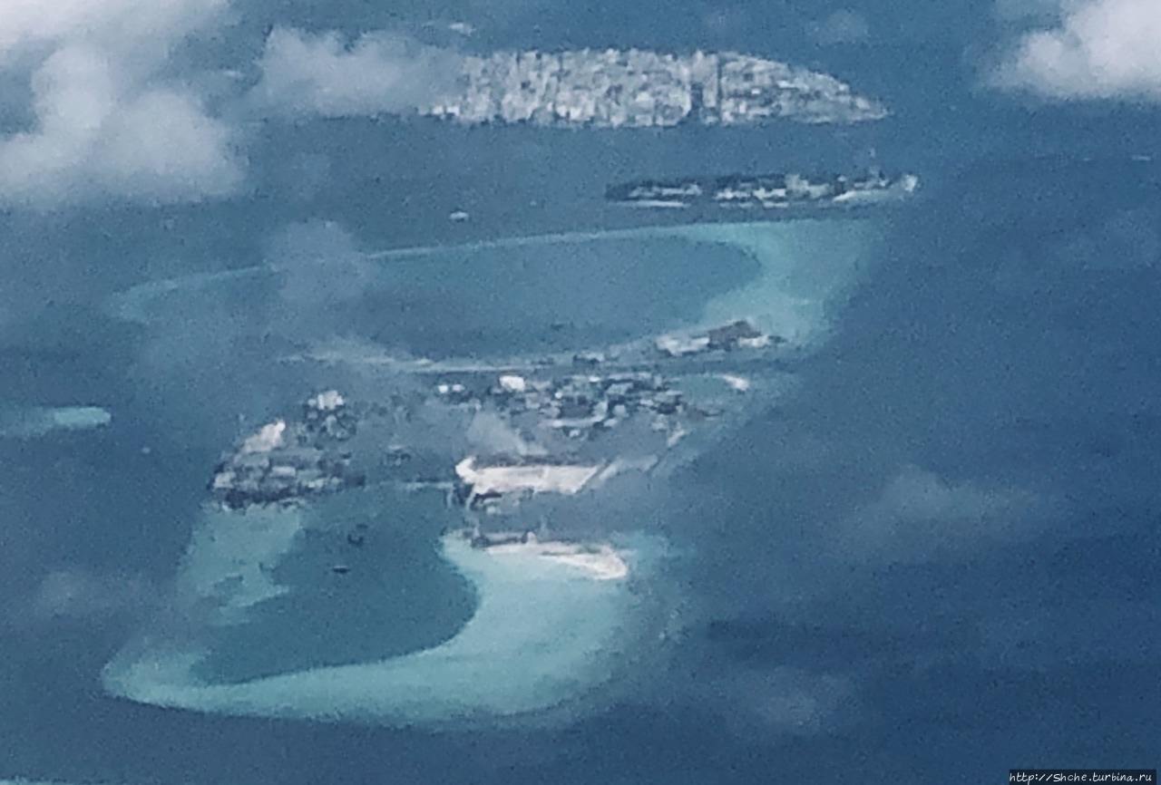 Ну вот, мы в воздухе и познакомились с Мальдивами. Самолёт садится в аэропорту Мале...