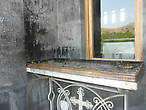 Сад при Церкви ухожен, в нем свободно бегали дети и срывали зрелые абрикосы с в ветвей. За аккуратным забором — обрыв, как всегда горный прекрасный пейзаж. И руины старого села Малышка. Если я правильно поняла, дома разрушены не бедствием, а просто временем — и село передвинулось в новое место.