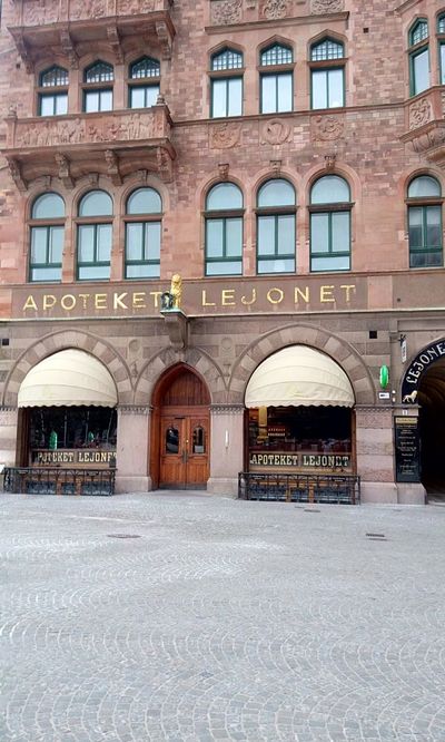 Помимо здания ратуши на площади имеется и ещё одно общественно-полезное здание — лучшая аптека своего времени во всей Швеции — аптека "Лейонет".