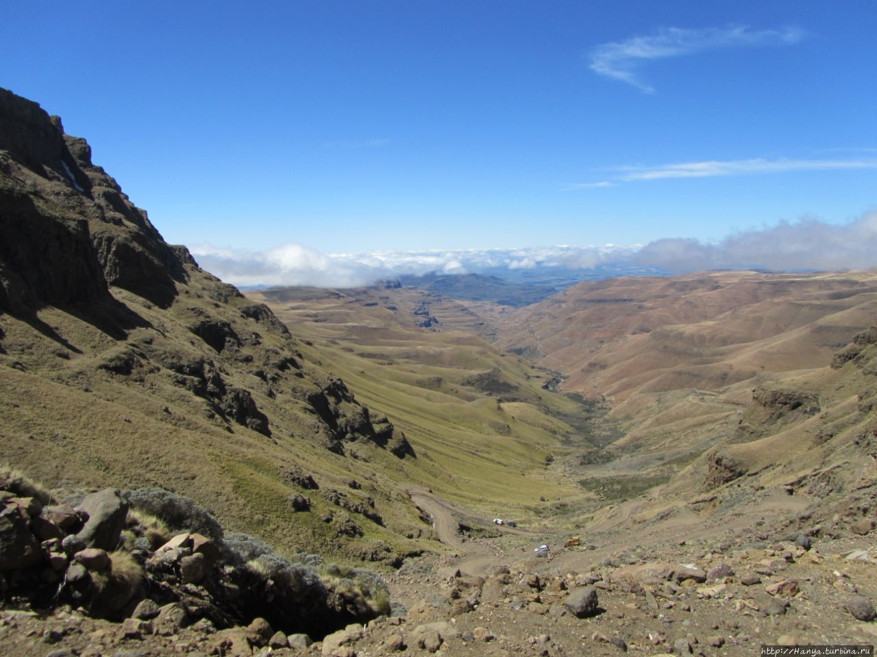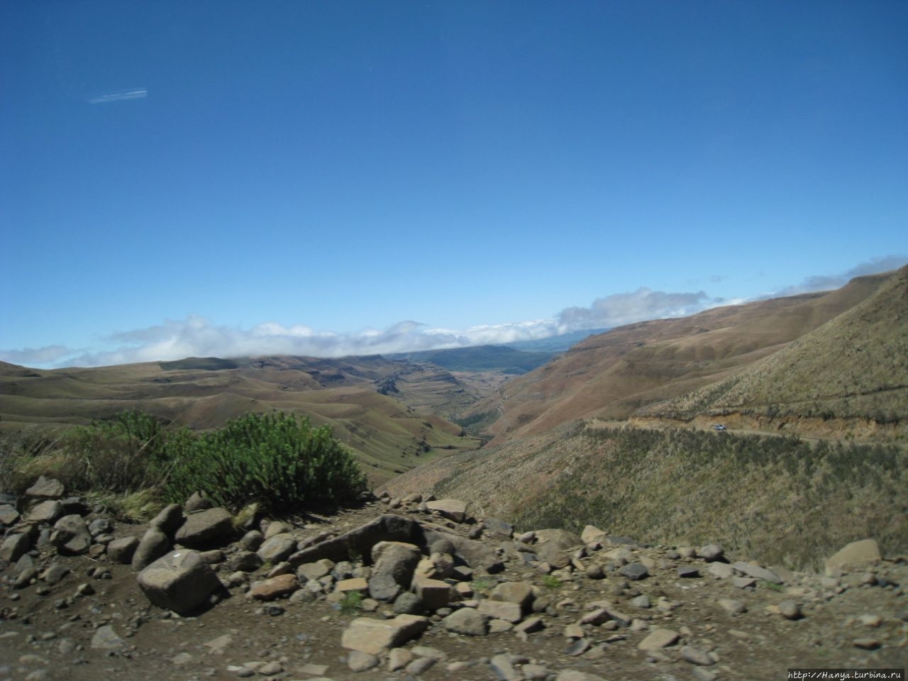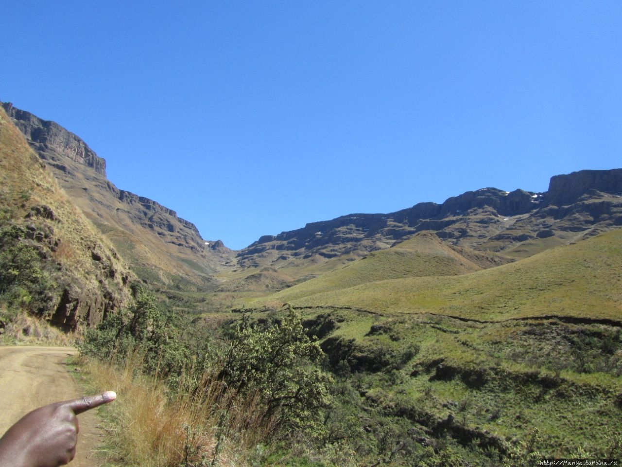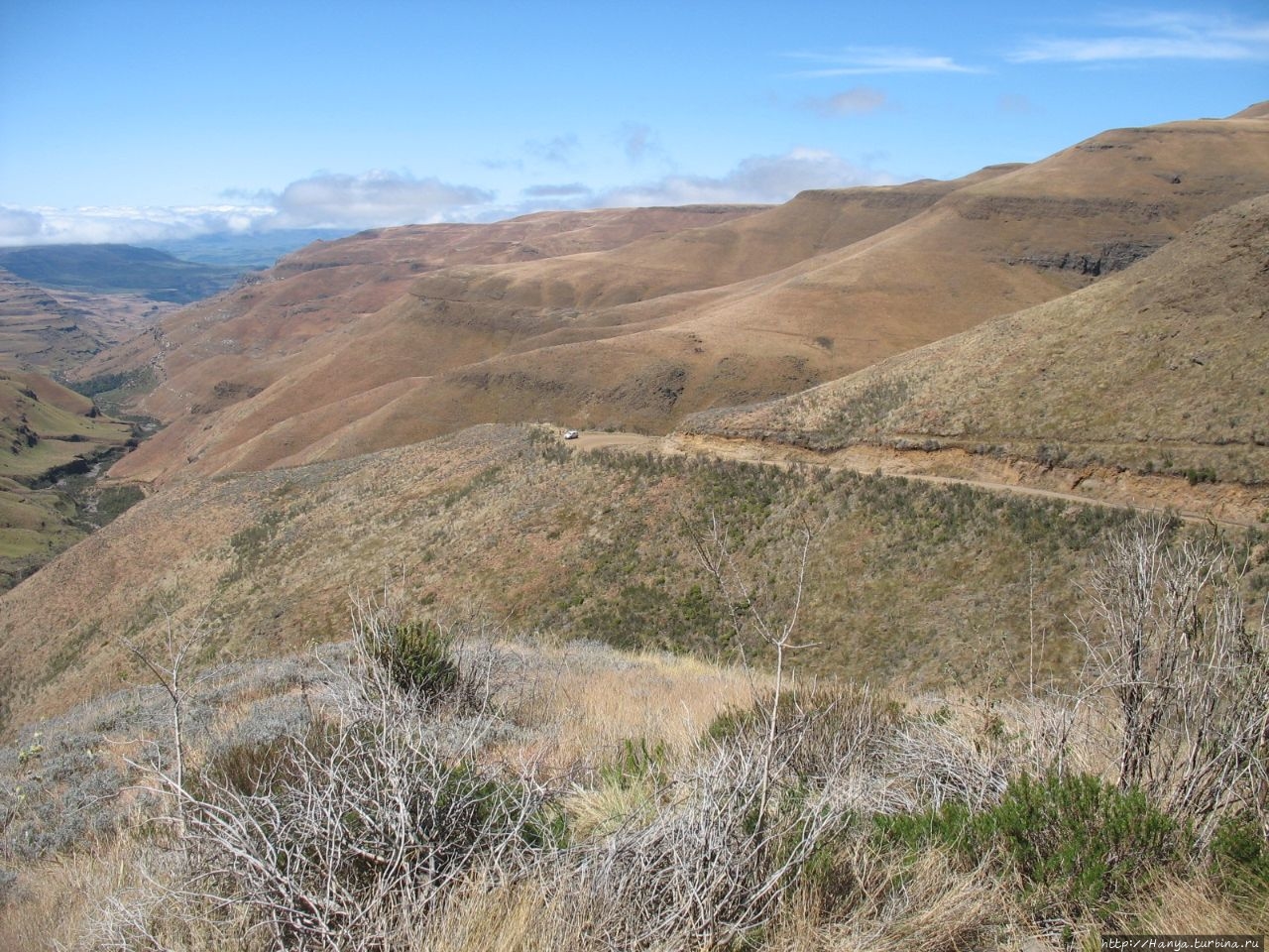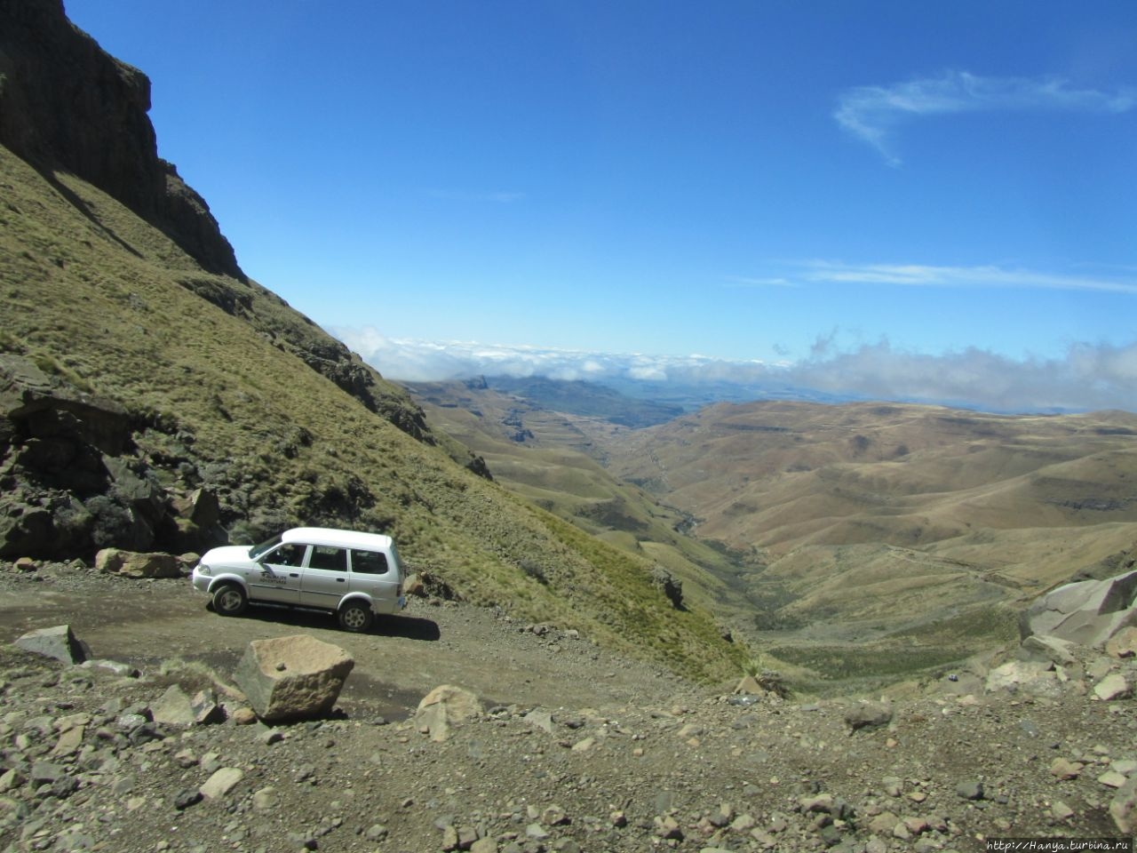 Стук в паспорт на южно-африканской стороне, и мы снова в джипе, чтобы преодолеть 8 км подъема к горному перевалу «Сани Пасс» (Suny Pass), за которым лежит таинственное горное Королевство Лесото (