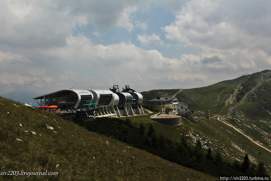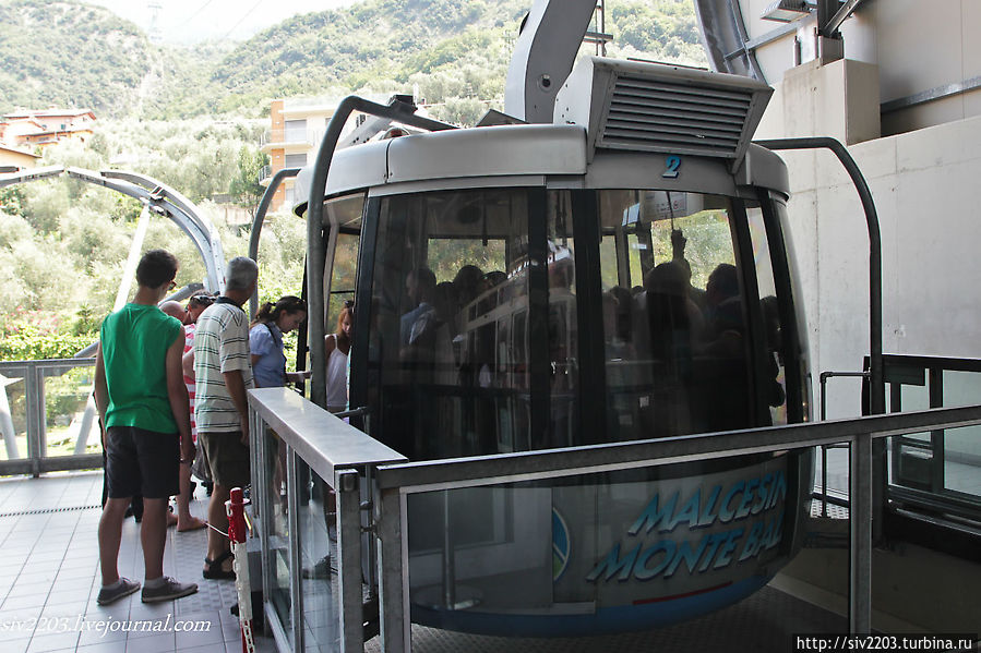 Фуникулер, который поднимает ежедневно тысячи людей на вершину считается одним из современных в мире. Действительно, кабины довольно просторные — вмещают от 40 до 60 человек. Необычно то, что кабина фуникулера вращается вокруг своей оси на 360 градусов, так что в каком бы месте вы бы не стояли, можно увидеть панораму целиком. Билеты в обе стороны для взрослых стоят 18 евро, для детей и пенсионеров 15 евро. Подъемник состоит из двух частей: первая остановка San Michele — туда идет крутая асфальтированная дорога, в принципе можно доехать на машине, вторая остановка Monte Baldo — конечная — высота около 1800м над уровнем моря. Высша точка этой гряды 2218 гора Valdritta.