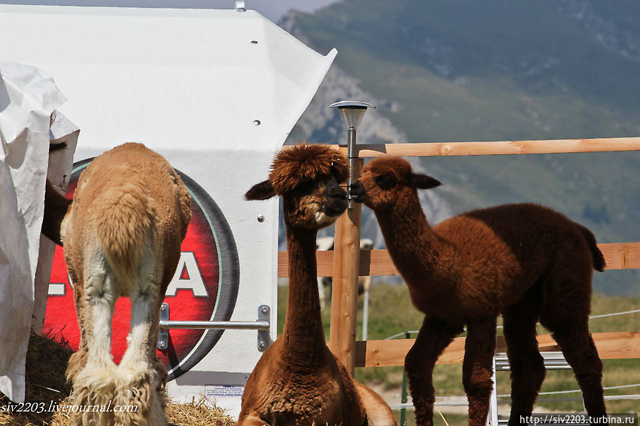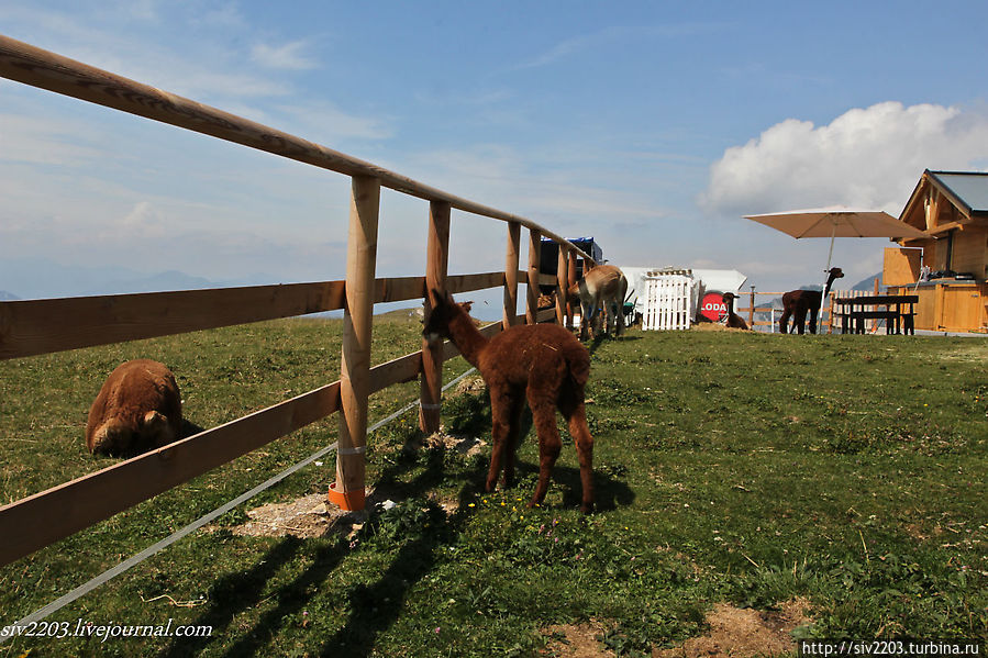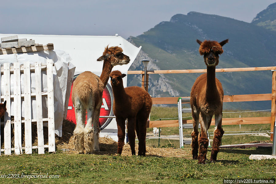 На горе живут прекрасные Альпаки и пасутся коровы-Милки.