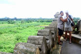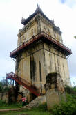 Падающая башня Намьин, высотой 27 метров, - это все, что осталось в Инве от Королевского дворца. Башня сильно накренилась. Того и гляди упадет. Но похоже никого это не волнует. Бирманские буддисты, видимо, философски относятся к тому, что при падении башни могут погибнуть люди. Как они полагают, никто просто так не погибнет. Погибнут только те, у кого карма не чиста. И поэтому башня остается одной из главных достопримечательностей разрушенного в 1838 году города. Сюда обязательно привозят всех без исключения туристов. Поэтому и торговцы бесхитростными сувенирами здесь никогда не переводятся.