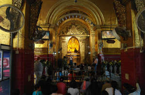 На самом деле, изначально бронзовую статую практически не видно, ибо паломники наклеивают на Будду золотые листочки, в результате его покров составляет порядка пятнадцати сантиметров, а так как лица не трогают, то создается впечатление, что Гаутама сидит в такой плотной огромной золотой шубе:) Общий вес золота — порядка двенадцати тонн! При этом официальный золотой запас Мьянмы — всего семь тонн:)