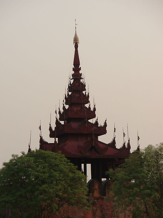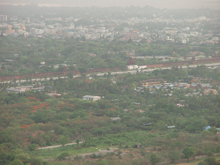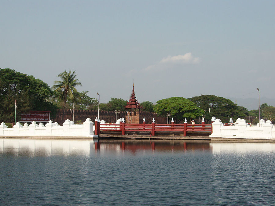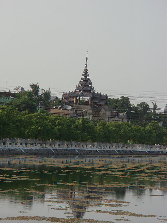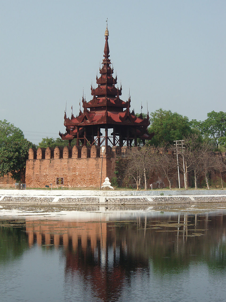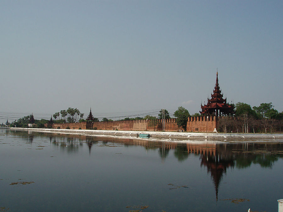Первое знакомство с городом — это прогулка вдоль красных, кирпичных стен мандалайского кремля, по набережной канала наполненного водой. Длина стены два километра, в первый вход