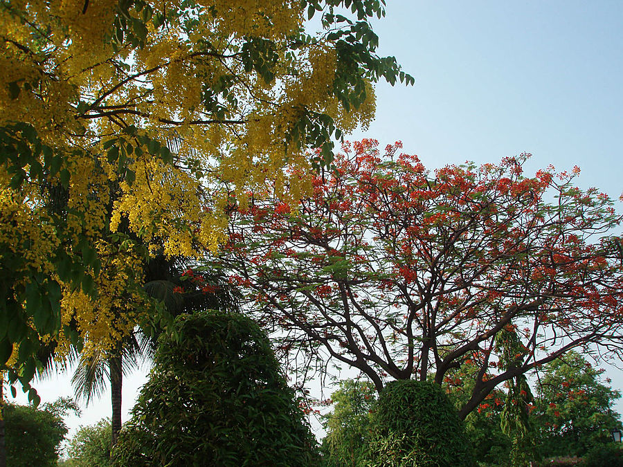 пышной зелени с острыми шпилями отдельно стоящих пагод, устремленных в небо.