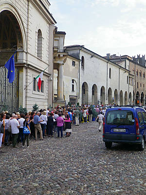 Моим первым впечатлением от Мантуи стала огромная, в несколько сот метров, очередь зрителей ожидавших начало спектакля в здании старинного рынка Mercato Bozzoli.