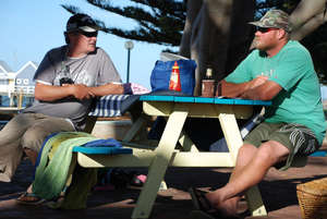 Вместе с нами в этом направлении движется поток других машин. Почти у всех из них на крышах видны доски для серфинга — здесь это повальное увлечение. Серфинг, как и баня, способствует стиранию социальных различий. В этом можно убедиться, увидев машины на стоянках для серфингистов – самые разные модели – от мерсов последней марки до фургонов сорокалетней давности.