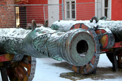 Отлил этих волков известный русский пушечный и колокольный литейщик Андрей Чохов. Одно из его детищ стоит на Ивановской площади Кремля — это Царь-пушка. Еще три стоят в Санкт-Петербурге в Артиллерийском музее. Ну и две в Грипсхольме, их привезли сюда в 1623 году.