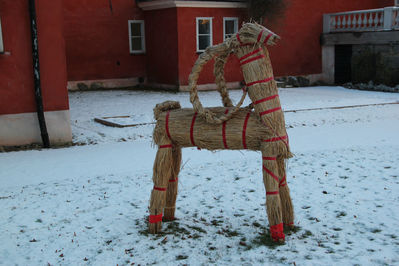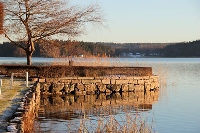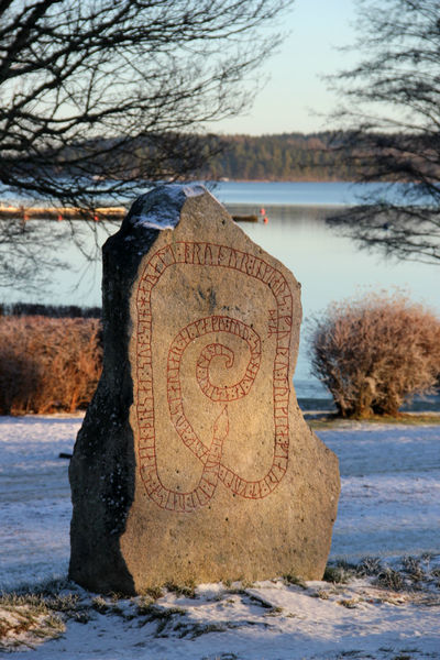 На входе в замок стоят два рунных камня XI века. Один из камней называется камнем Харальда, надпись на нем гласит: "Тола этот камень воздвигла в память о сыне своем Харальде, брате Ингвара. Они храбро пошли за золотом и на востоке орлу отдались, они умерли в земле Аббасидов". Ингвар же был предводителем неудачного похода викингов на Каспий в 1036 — 1042 годах. На этой земле есть еще несколько «Камней Ингвара».