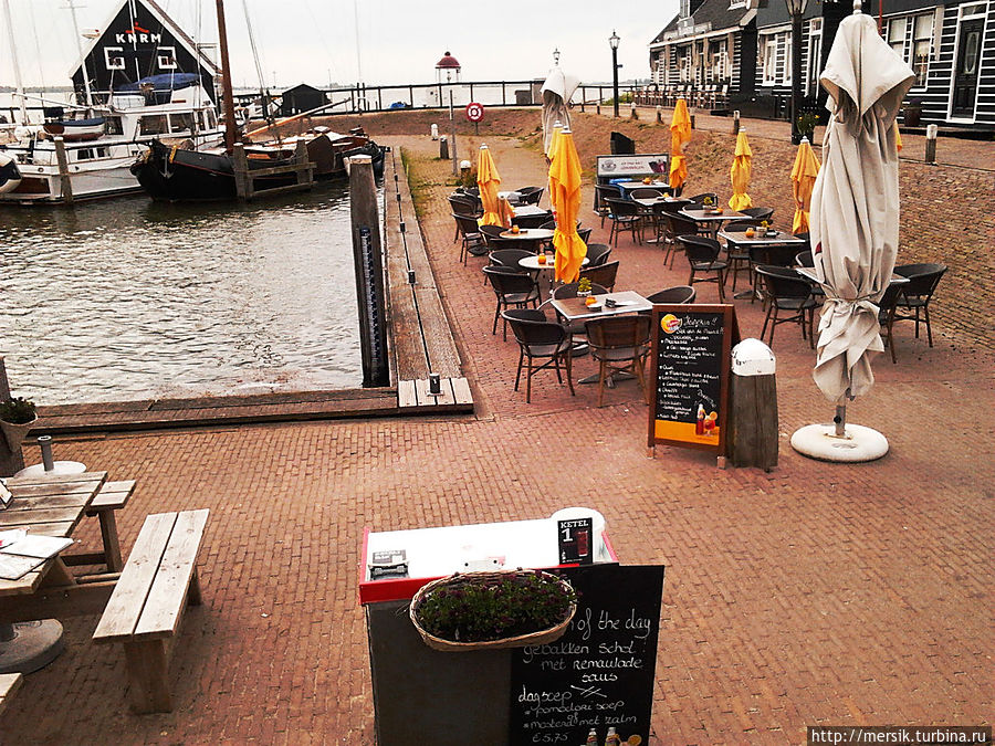 В общем, замерзшие и не очарованные (не могу сказать, что деревня на острове Маркен разочаровала нас совсем), мы отправились в ресторан. Согреться в голландском ресторане всегда есть чем, тем более на острове, поесть- рыбу они готовят исключительно вкусно. Настроение заметно лучше, за окном- великолепные картинки: вода, порт, яхты, лодки. Солнышко! Жить, как говорится, хорошо! А вот хорошо ли жить на Маркен? И мы с удовольствием возвращаемся в город