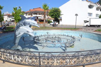 Будучи в Ичмелере, мы увидели еще один фонтан с дельфинами, но без воды, к сожалению. Зато между Ичмелером и Мармарисом встретился вот такой красавчик телефон-автомат.