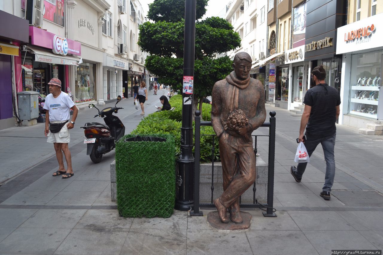 Песня, застывшая в бронзе. А вот турецкий памятник. Если отбросить несовпадение некоторых деталей- это практически родные братья по любви. Только у саратовского памятника есть часы на столбе, под которым стоит бедный влюбленный. У турецкого памятника часов нет. Да и выглядит турок более грустным, чем его собрат из Саратова.