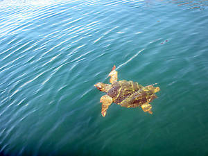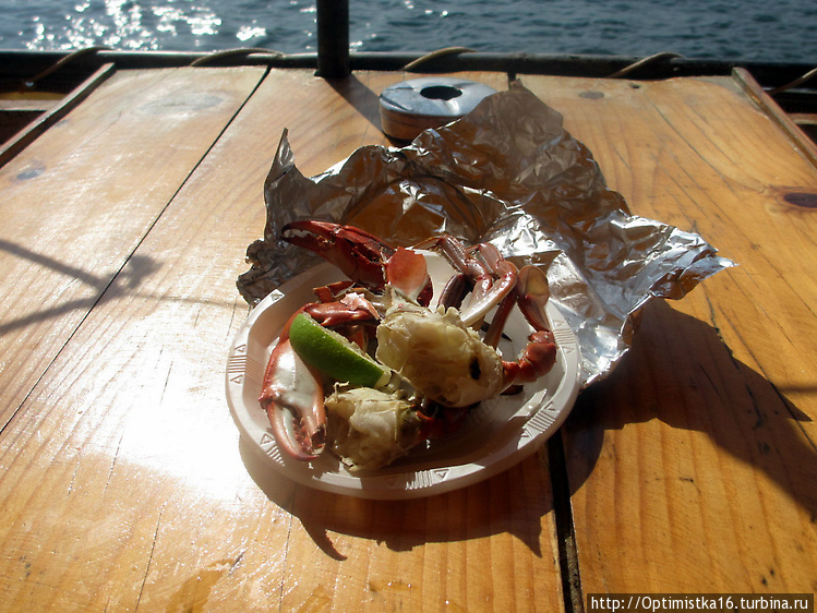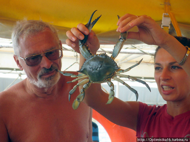 Черепахи питаются, как раз, голубыми крабами, которых предложили нам попробовать. Мы не стали отнимать у них пищу.