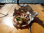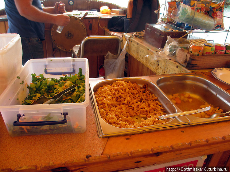 Обед на катере — самообслуживание. Ешь, сколько хочешь. Добавка не возбраняется. Однако, выпивка за свой счёт.