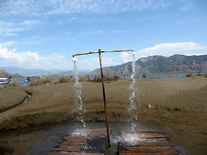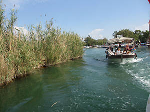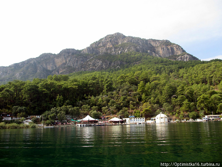 В первом случае, вы плывете на катере по морю примерно два с половиной часа до пляжа, купаетесь и загораете на пляже, затем по реке Дальян на катере доходите до озера, на берегу которого находятся грязевые и минеральные источники. Вам дается время на принятие грязевых и минеральных ванн, затем Вы садитесь на катер и плывете по реке в обратном направлении до моря. Затем по морю возвращаетесь в Мармарис. Стоимость этой экскурсии у Валентины в начале октября была 15 долларов. В эту цену входит трансфер от гостиницы и обратно, русскоязычный гид и обед на катере.