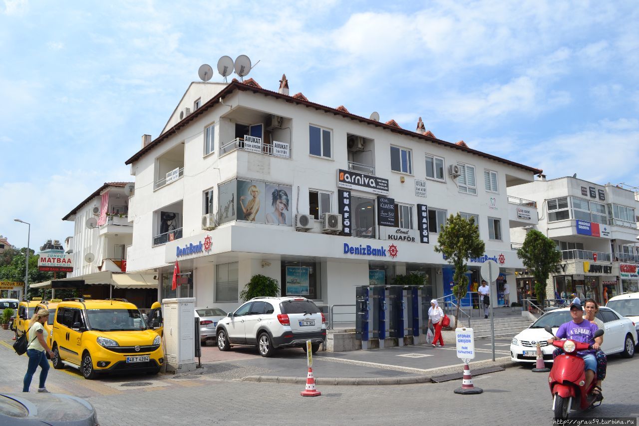 Возле площади танцующих фонтанов, по другую сторону улицы находится центральный офис банка "DenizBank" в Мармарисе, где можно снять с рублевых счетов деньги в турецких лирах с карт Master Card Standard/Visa Classic и выше по "домашнему" тарифу, то есть бесплатно. При этом комиссия по картам Maestro и Visa Electron составляет 0,75%.