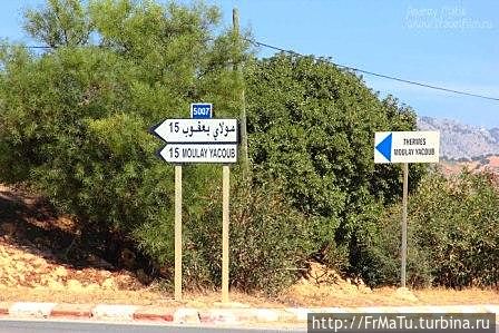 В районе города Фес мы обнаружили два минеральных источника. Как и показано в дорожной карте не доезжая досамого города указатель показывает 15 км. Мулай Якуб