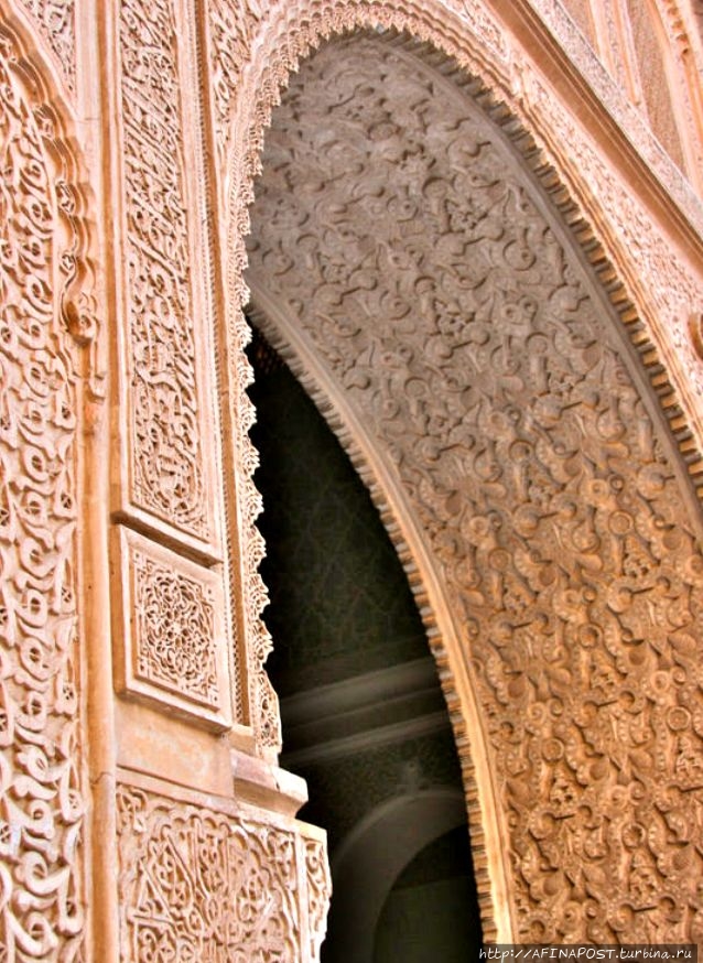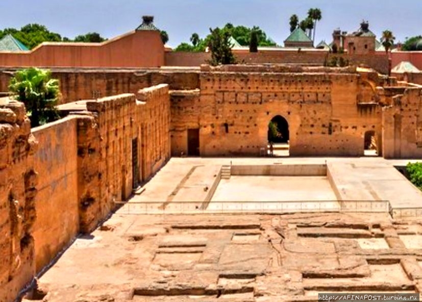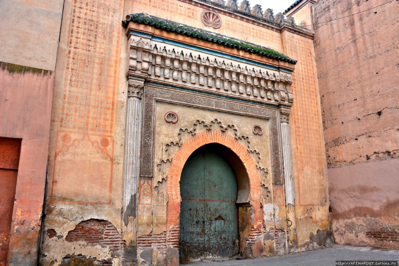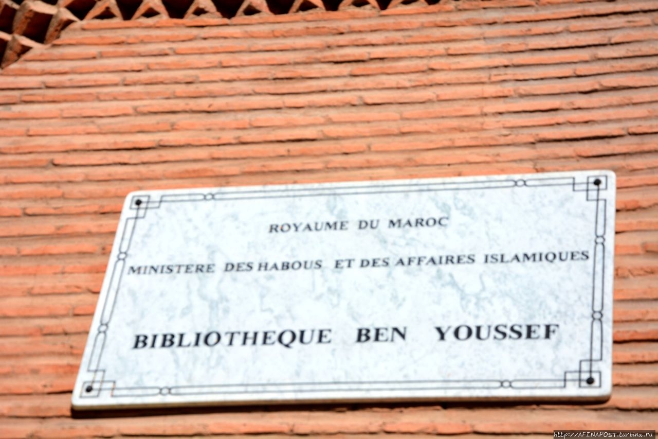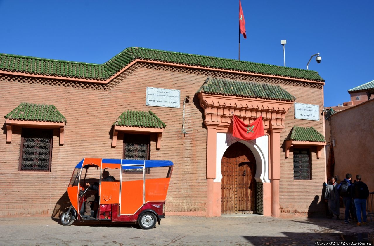 Кутубия - главный ориентир Красного городаесть не менее значимая мечеть Али-бен-Юсуф, построенная во второй половине XII века. Это одна из самых больших и самая старая из сохранившихся в Красном городе. Первоначально она была ещё больше, но серьёзно пострадала при смене правящих династий, когда её пытались разрушить и возвести что-то своё. Мечеть отреставрирована. Вход только для мусульман.
