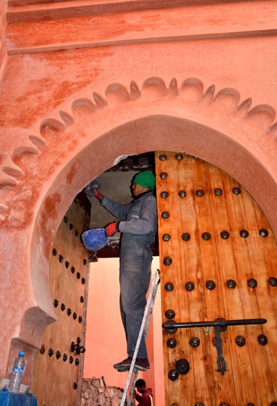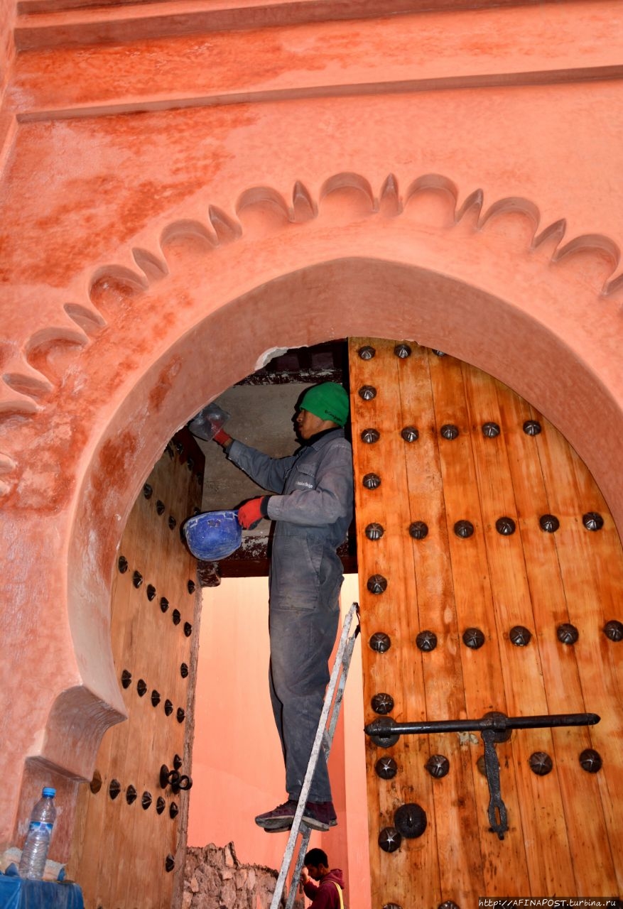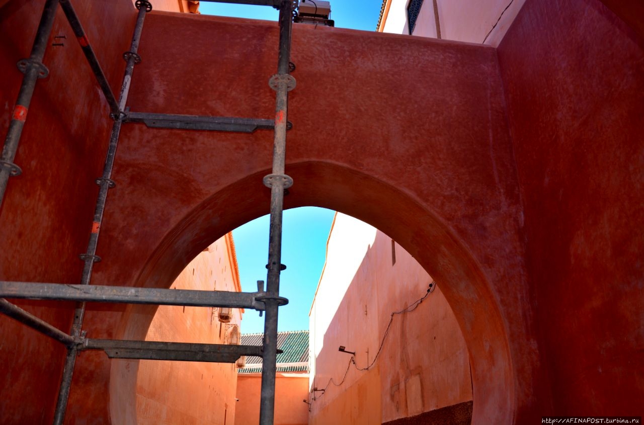 Маляры красили 15 метровые стены и все цветные фаянсовые арабески были закрыты целлофаном. Посмотрев, что было возможно, пошли искать библиотеку Бен-Юсефа и музей Марракеша.