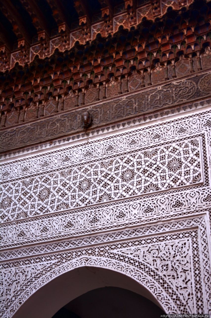 Рядом с мечетью Али-бен-Юсеф и мавзолеем расположен медресе, истинный шедевр архитектуры эпохи Меринидов.