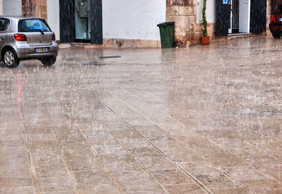 Хорошо, что внутри массивных арок, окружающих площадь Piazza Maria Immacolata было достаточно места, чтобы укрыться. Там даже уместились столики сразу нескольких ресторанчиков, кстати, хорошенько заполненных посетителями. С погодой творилось что-то невообразимое, с неба лились настоящие струи, и били по брусчатке с такой силой, что вверх взлетали 10-и сантиметровые фонтанчики. Я даже попыталась их сфотографировать.