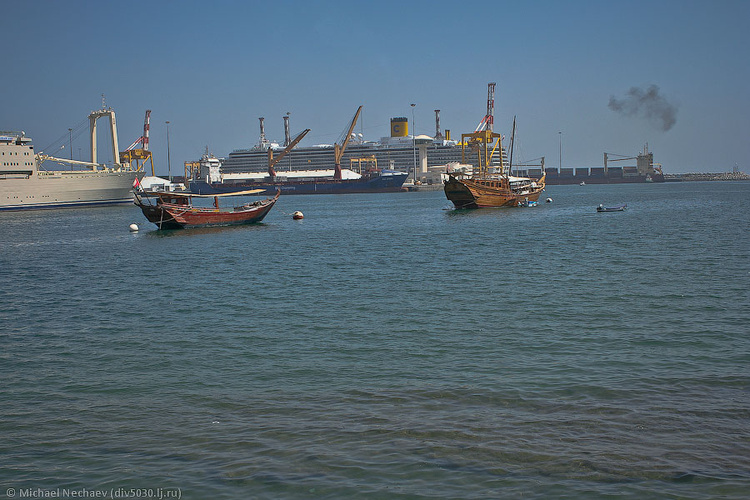 Маскат - столица Омана в первую очередь запоминается заоблачной температурой, которая начинается за 30 а днем уходит за 40 и далее.