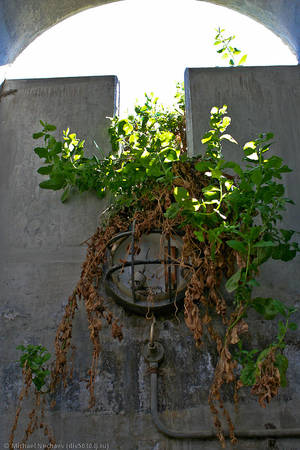 Даже на некоторых фонарях в переходах прорастает зелень: