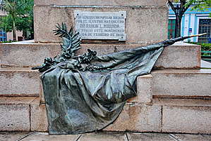 Вообще-то, монумент Хосе Марти создан в 1909 году доктором Рамоном Миранда. О чем говорит табличка на задней стороне памятника.