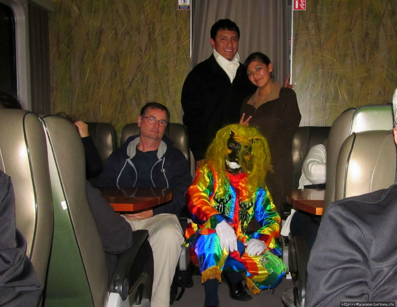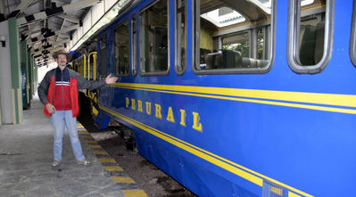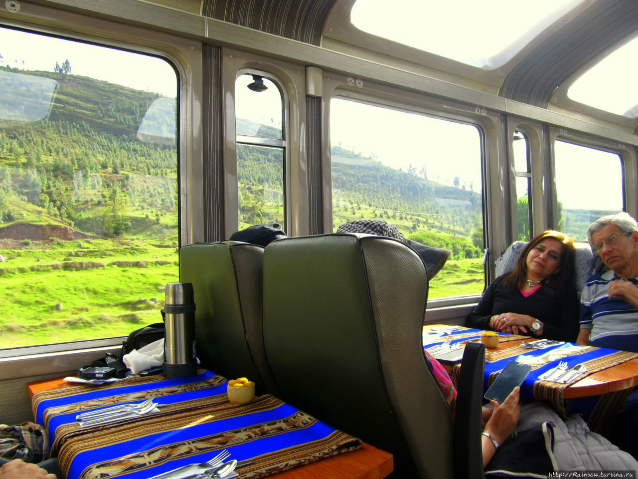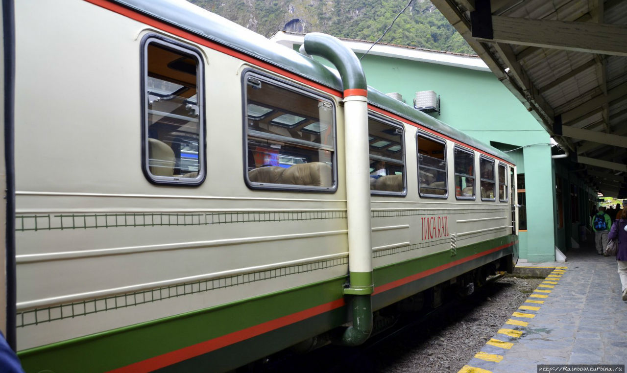 Рано утром мы подъезжаем к железнодорожному вокзалу. На перрон пропускают только по паспортам и билетам. Билеты на поезд дорогие, несмотря на то, что в Перу все очень недорого. Но железнодорожная ветка от Куско до Агуас Калиентас принадлежит английской компании, которая является монополистом на транспорт в Мачу-Пикчу, и цены она заламывает немалые. И даже так, купить билеты нелегко, в сезон они распроданы за несколько месяцев вперед. Мы, например, едем в не сезон, но билеты купили за месяц вперед, дома по интернету. Туристы все равно купят, потому что в Мачу-Пикчу нет автомобильного и автобусного сообщения. Только на поезде или пешком несколько дней. Нас уже ожидает роскошный поезд, состоящий из нескольких синих вагонов. Эх, сегодня я могу сказать, что жизнь удалась!