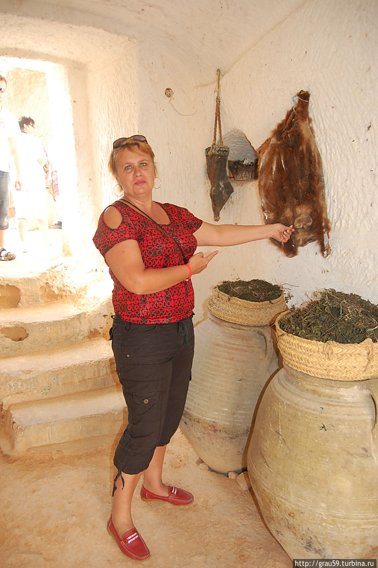 В среднем в пещере троглодита Матматы около 10 помещений. Помещения побелены. На стенах развешена и на полу разложена скарб троглодитов.