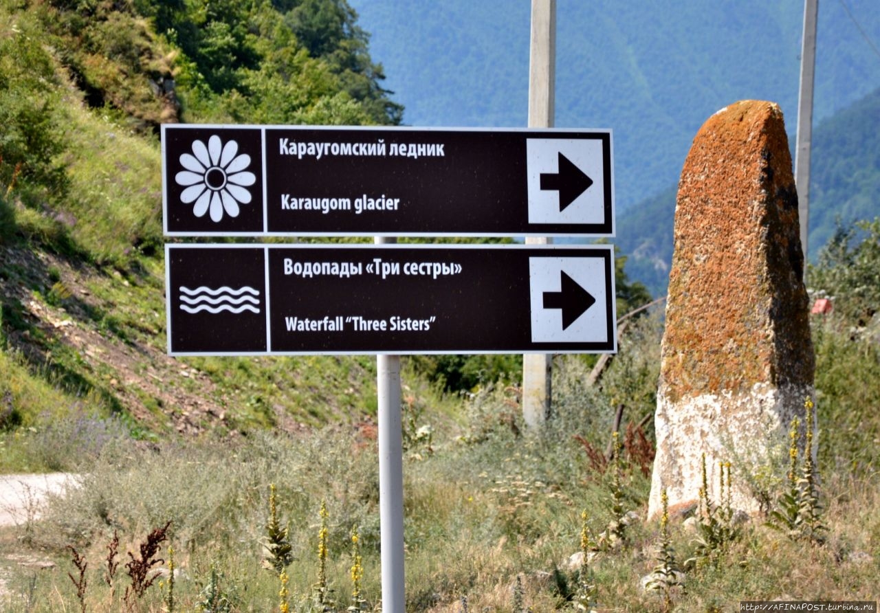 На развилке дороги стоит чёткий указатель с перечнем общих туристических и природных мест!
