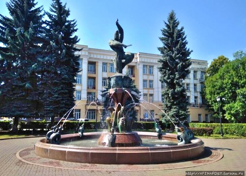 У подножья памятника на чёрных плитах золотом написаны фамилии не вернувшихся с войны и скульптура скорбящей женщины с маленьким ребёнком.