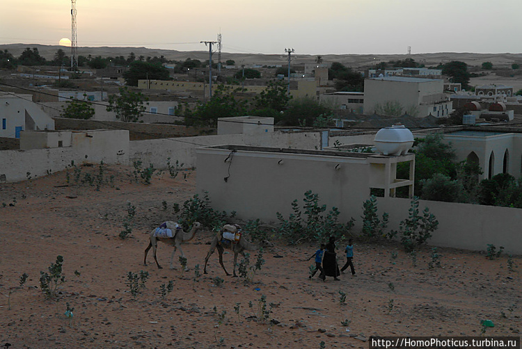А спустя еще пару часов добрались до конечной на сегодня точке нашего маршрута — городишка Шингетти. Ну как — добрались... Проехали его насквозь по пустыне и забрались с разбегу на довольно-таки высокие дюны , и сразу стало понятно, почему мы так быстро гнали: через десять минут состоялся симпатичный, хоть и смазанный дымкой, закат солнца над Шингетти, который наблюдали как раз с вершины дюны. Дюны, конечно, не такие, как в