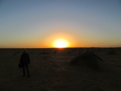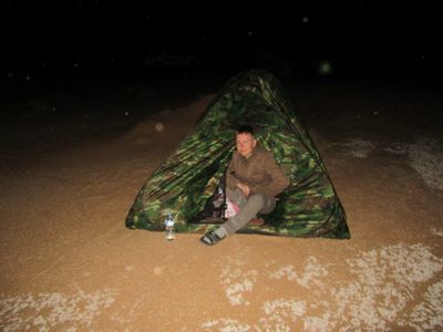 Ну,в общем,палатку мы поставили заново,закрепили её.Наш проводник был в шоке.Ставил палатку он на совесть,колышки вбил как следует,такого ветрища как он констатировал данный факт,он еще не видал,хотя,много раз оставался в Хамаде на ночь.Сказал,что духи пустыни проснулись и захотели общаться,и,видимо,для этих самых целей выбрали меня.Оглядев меня,вдруг застыл на висящем на моей шее свежеприобретенном туарегском кресте.Это он от тебя беду отвел,резюмировал проводник.