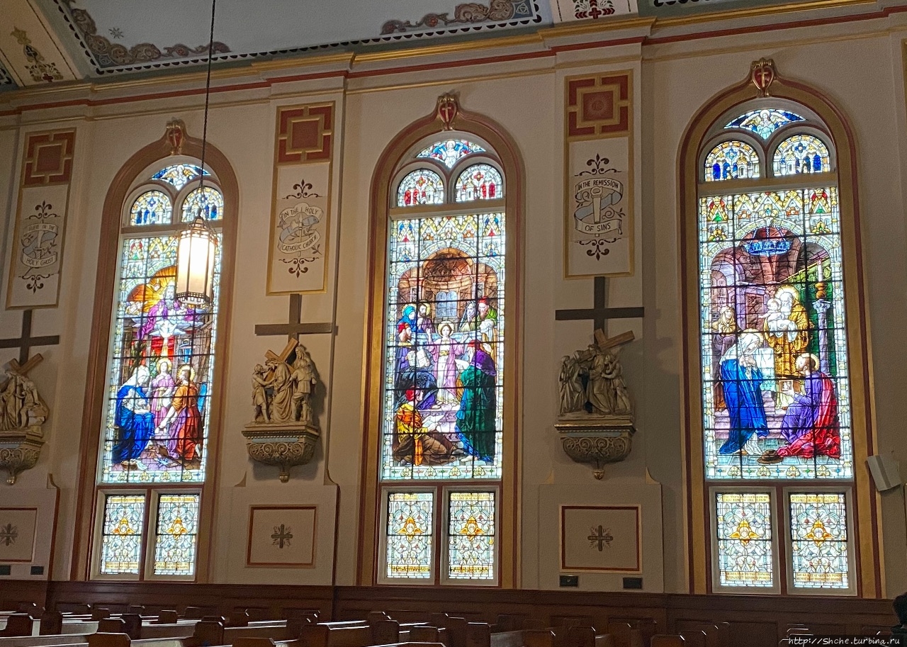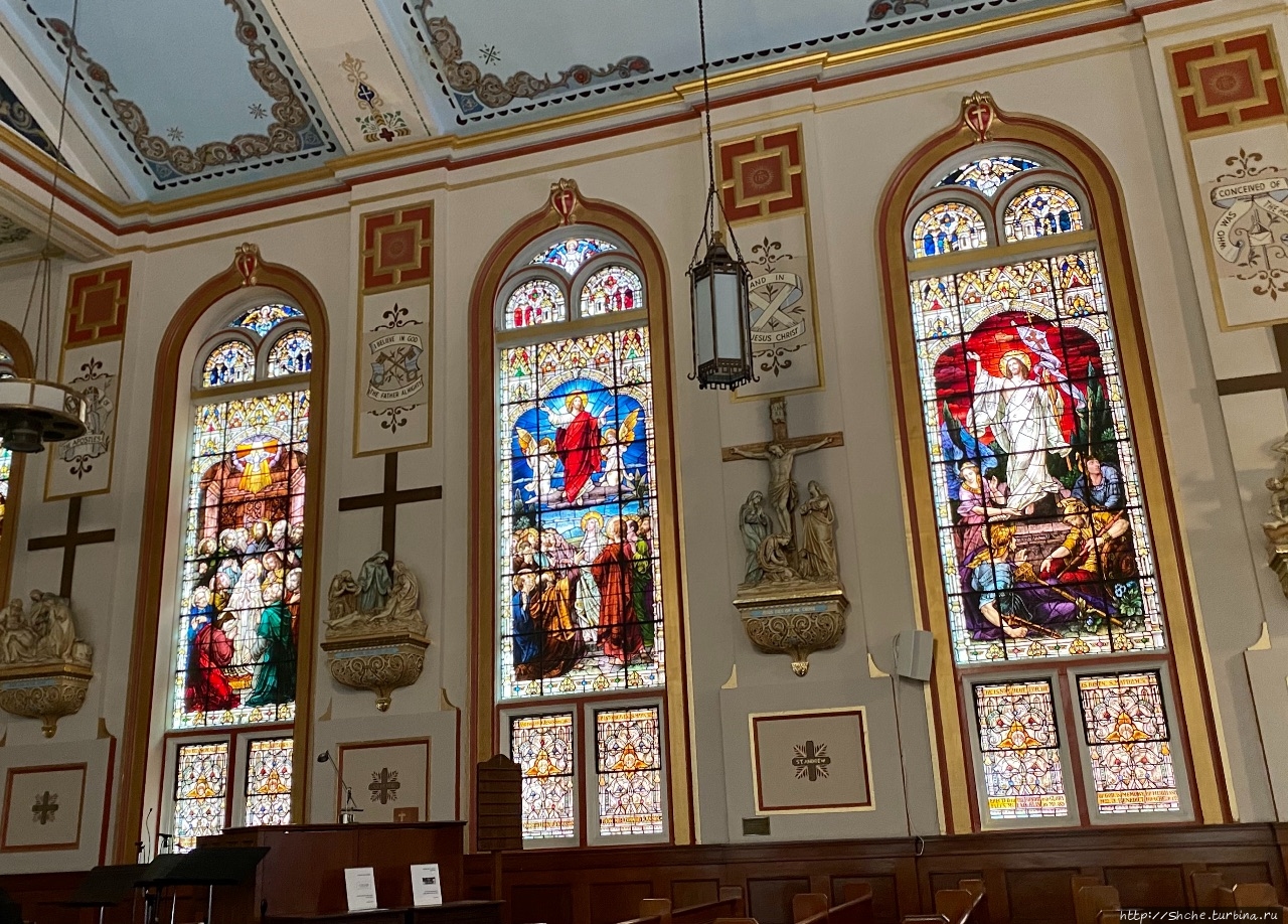 Самое запоминающееся в интерьере церкви — ее витражи.