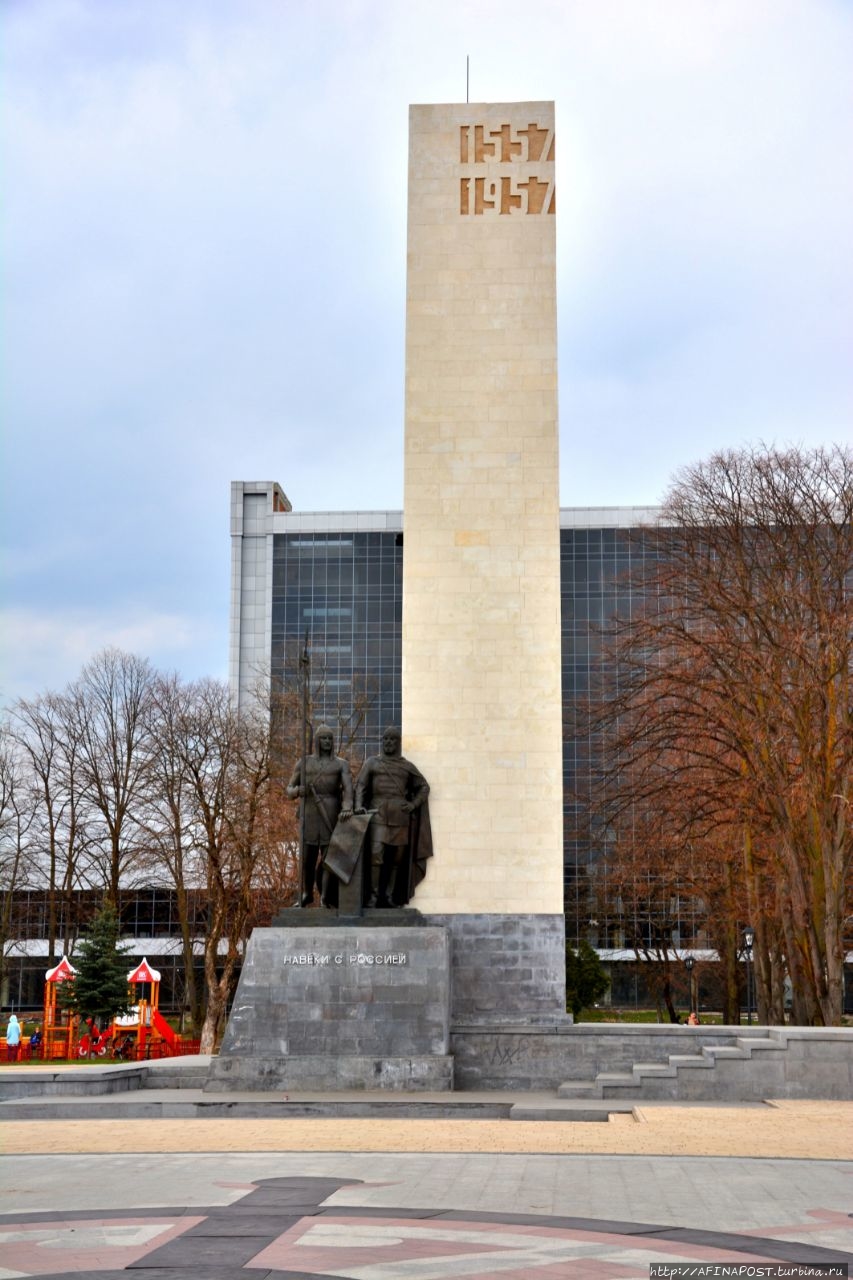 Мы там не побывали, зато очутились на центральной площади Дружбы. Это целый мемориальный комплекс, основанный в 1968 году, он символизирует 400-летний союз Адыгеи с Россией.