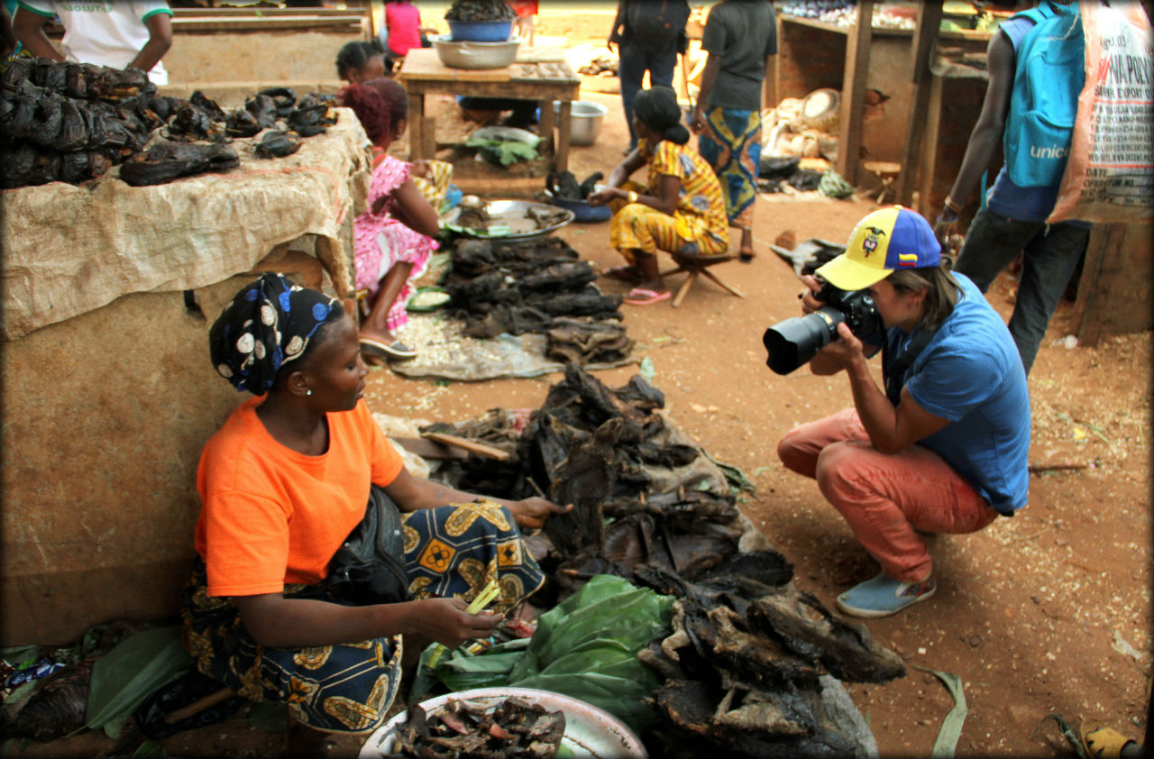Мой попутчик Мишa по-прежнему упорно искал мёртвых обезьян. Мы видели их днём ранее в Браззавиле. Ему они запали в душу и он жаждал сделать качественный кадр. Там фотографировали только на ходу не выходя из машины, поскольку продавцы снимать категорически не разрешали.