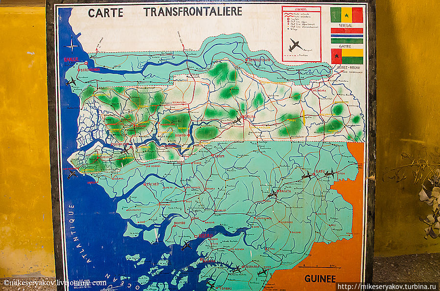 Мне всегда нравится фотографировать карты и тут я не удержался сфоткал карту «водной местности» на границе с Гамбией.