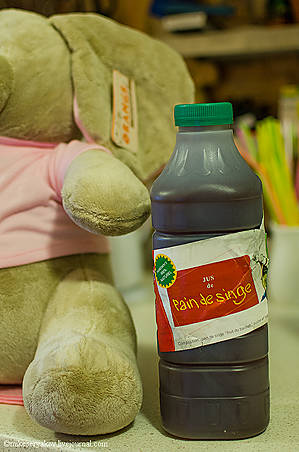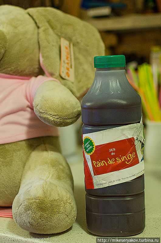 Он продаётся вот в таких бутылках и очень вкусный, я даже привез его с собой домой, эндемичный для Сенегала напиток.