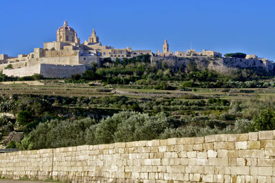 Город Мдина расположен вдали от моря на высоком холме. Даже видя издалека эту мощную крепость, невольно испытываешь некое радостное чувство от соприкосновения с живой историей Мальты.
