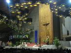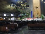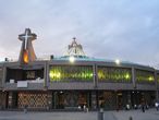 Новая базилика имеет круглую форму и с улицы напоминает шапито. Только крест на вершине указывает на ее предназначение.