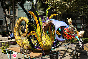 Гуляя по столице совершенно случайно наткнулся на выставку алебрихес (яркие скульптуры фантастических существ) на проспекте Реформы между колонной "Ангел независимости" и памятником богине Диане.